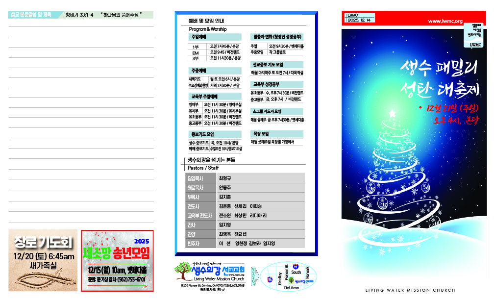 12.14.2025 주보 By LWMC Media | December 13, 2025 12.14.2025 주보1 12.14.2025 주보2 1214 ← 12.07.2025 주보12.21.2025 주보 →